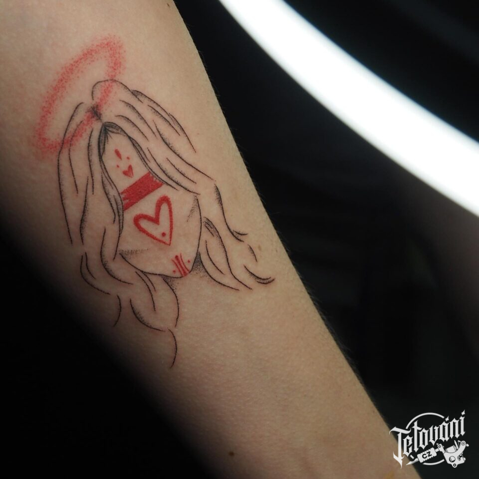 Tetování anděl, symbol na předloktí