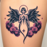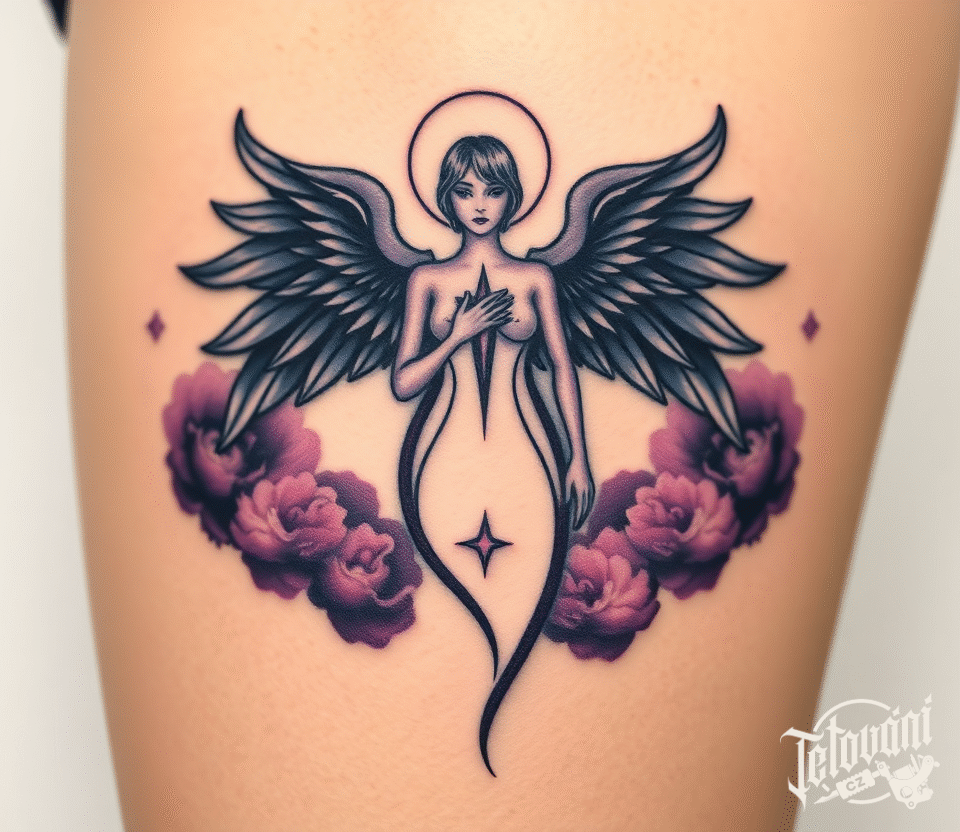 Tetování anděl žena, anděl smrti na stehně
