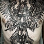 Tetování anděl žena, anděl strážný na hrudi