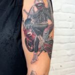Tetování anděl žena, motorkářka na rameni
