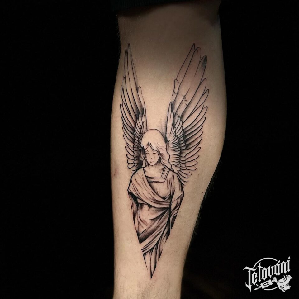 Tetování anděl žena na lýtku