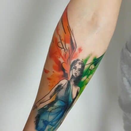 Tetování anděl žena na lýtku