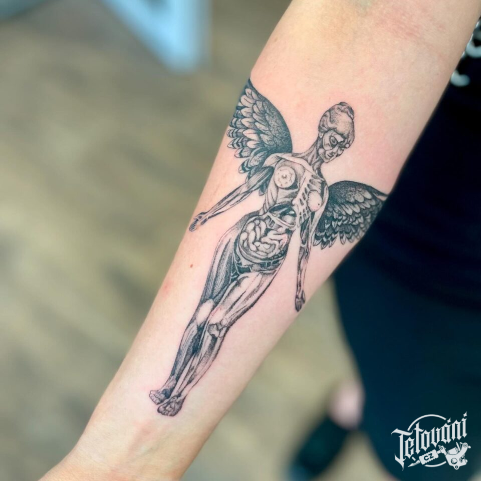 Tetování anděl žena na předloktí