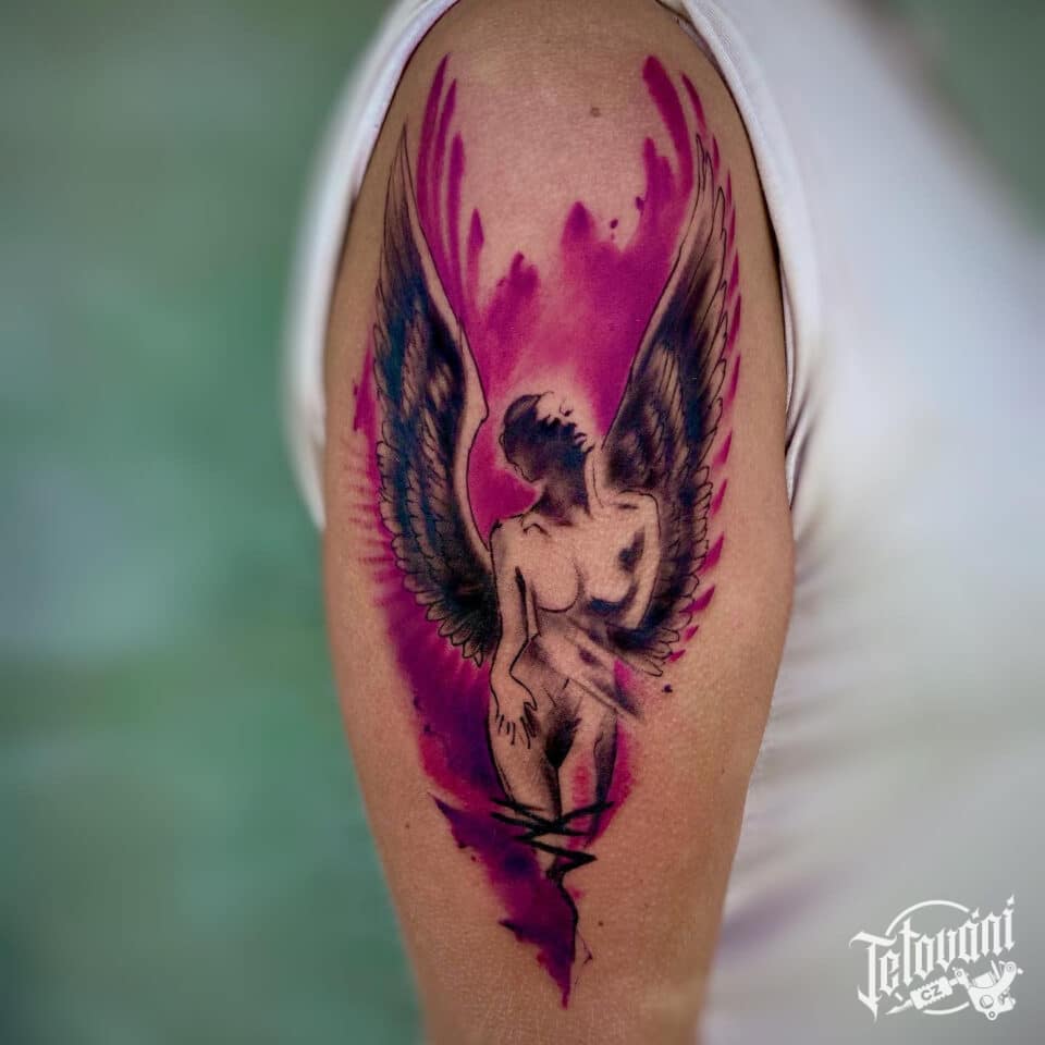 Tetování anděl žena na rameno