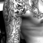 Tetování andělé, hodiny a holubice, zvíře na ruku a prso