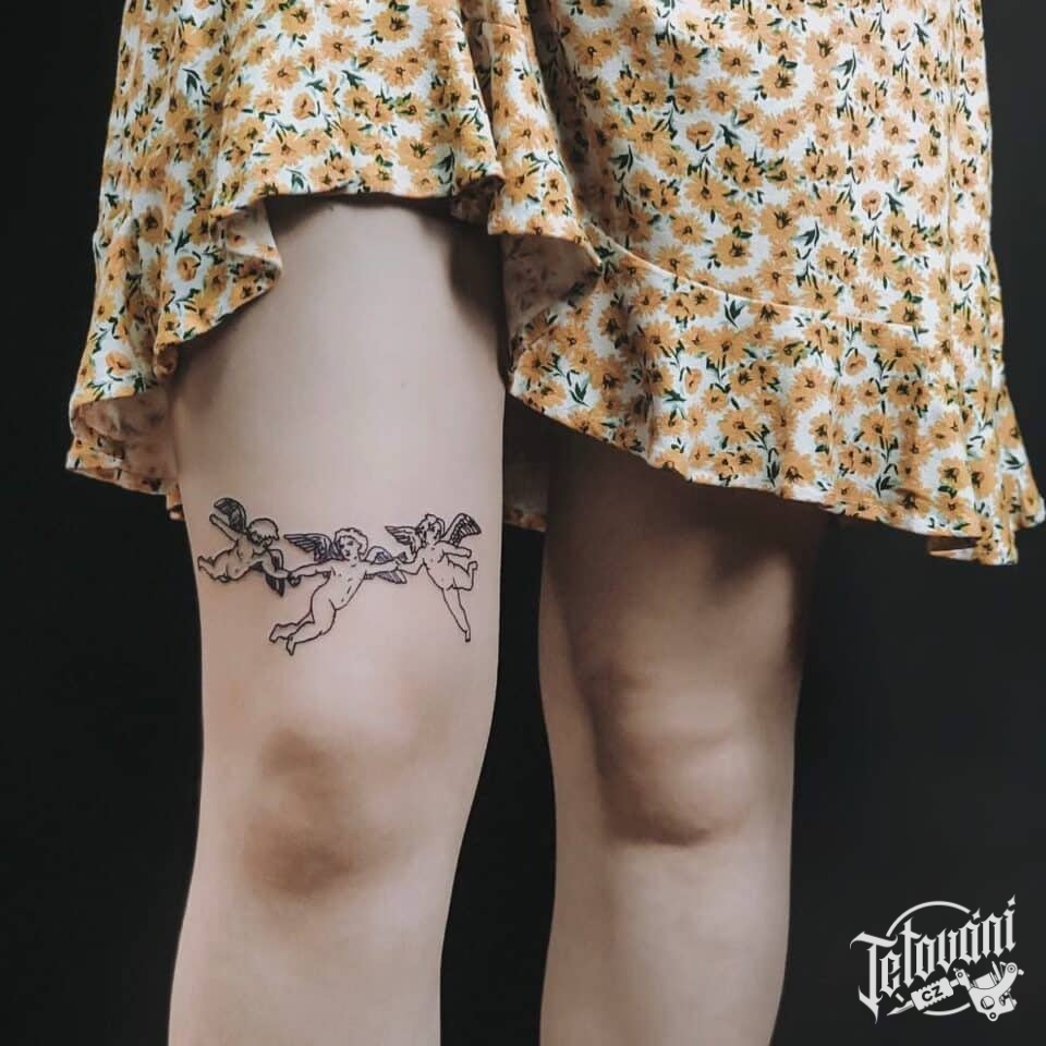 Tetování andělíčci na stehně