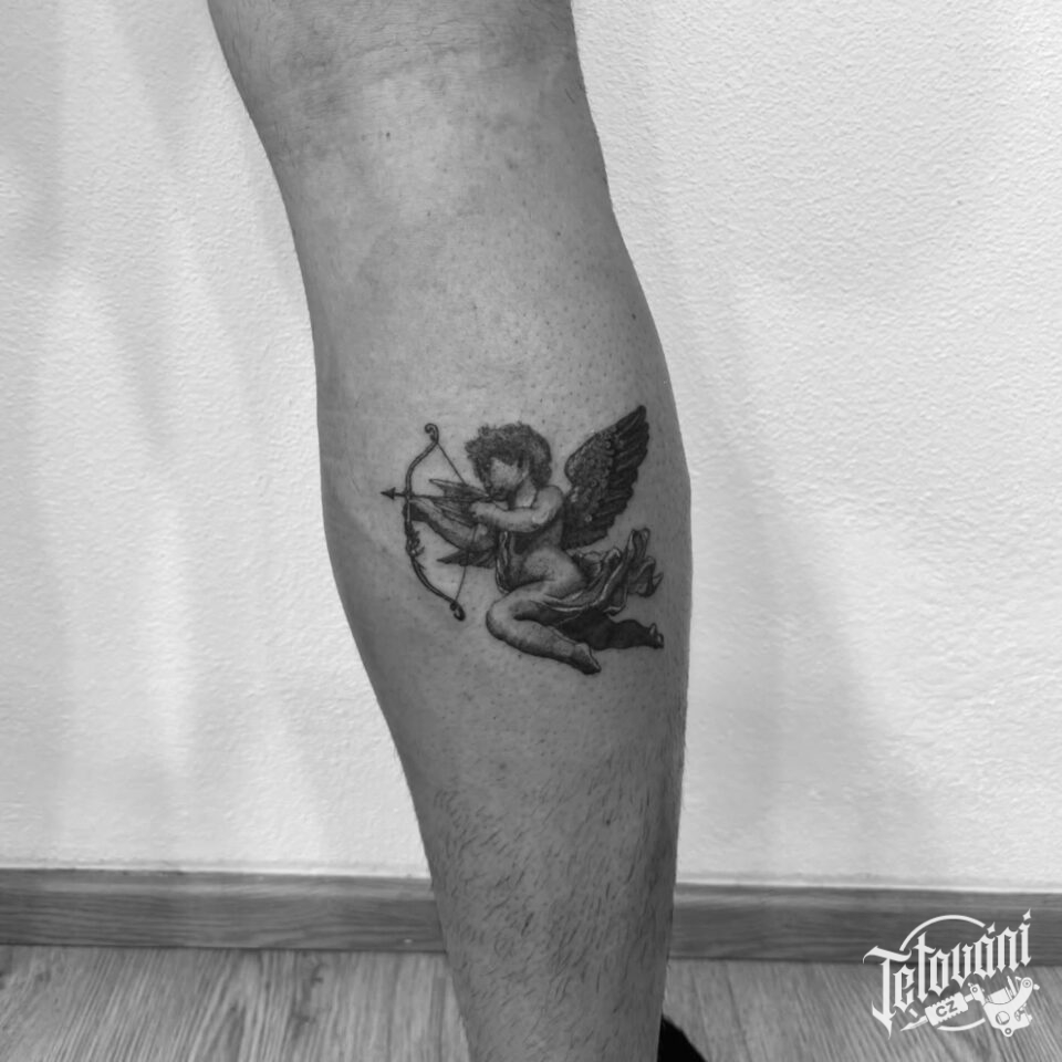 Tetování andělíček na lýtku