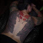 Tetování andělská křídla a květiny na zádech