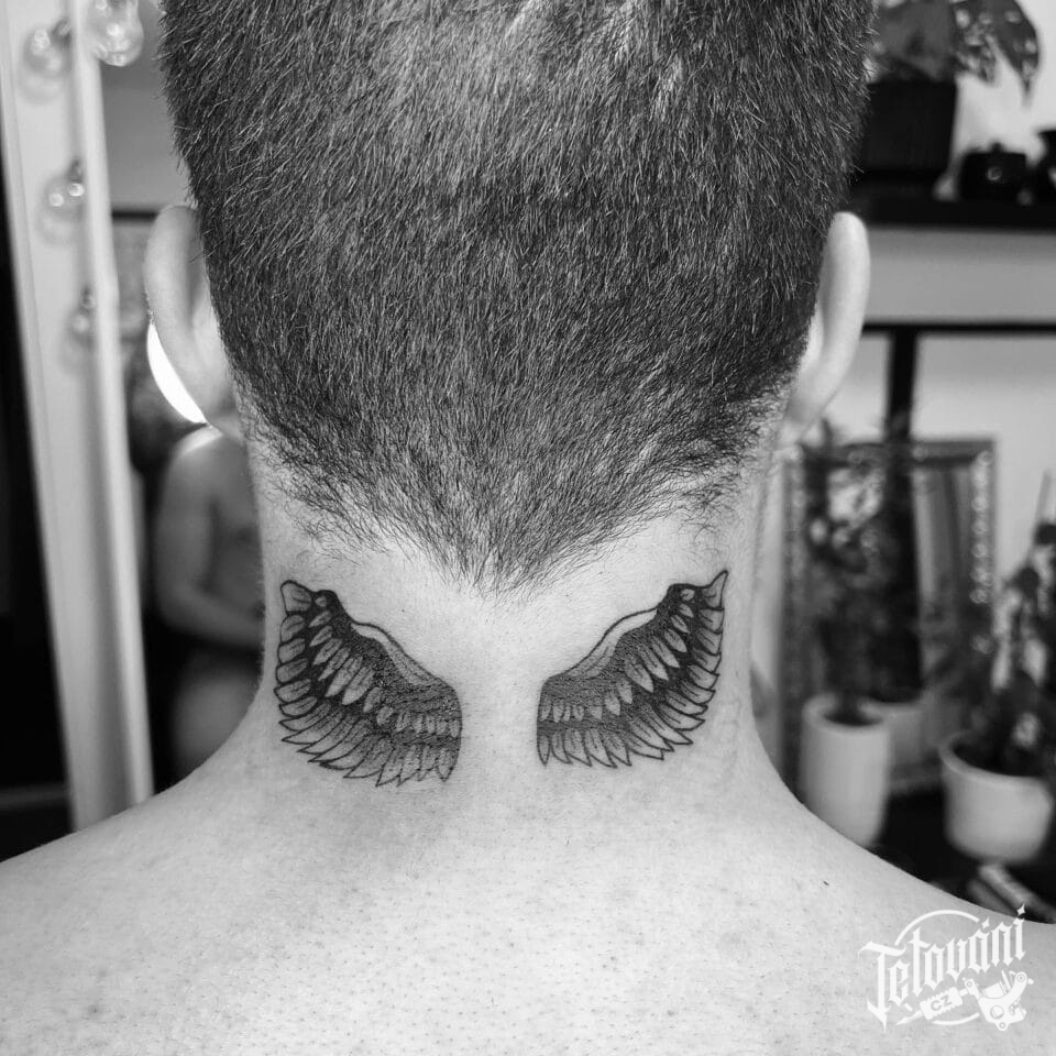 Tetování andělská křídla na krk
