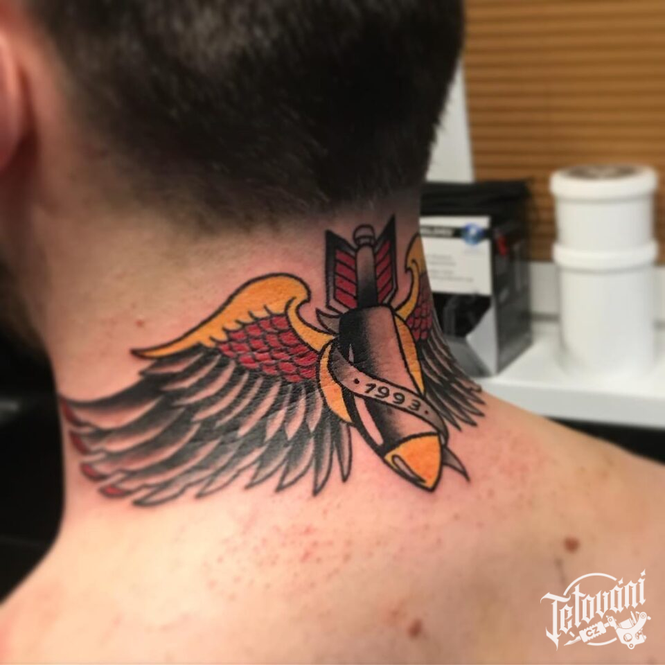 Tetování andělská křídla na krku