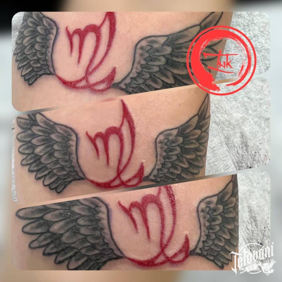 Tetování andělské křídla se symbolem na ruce