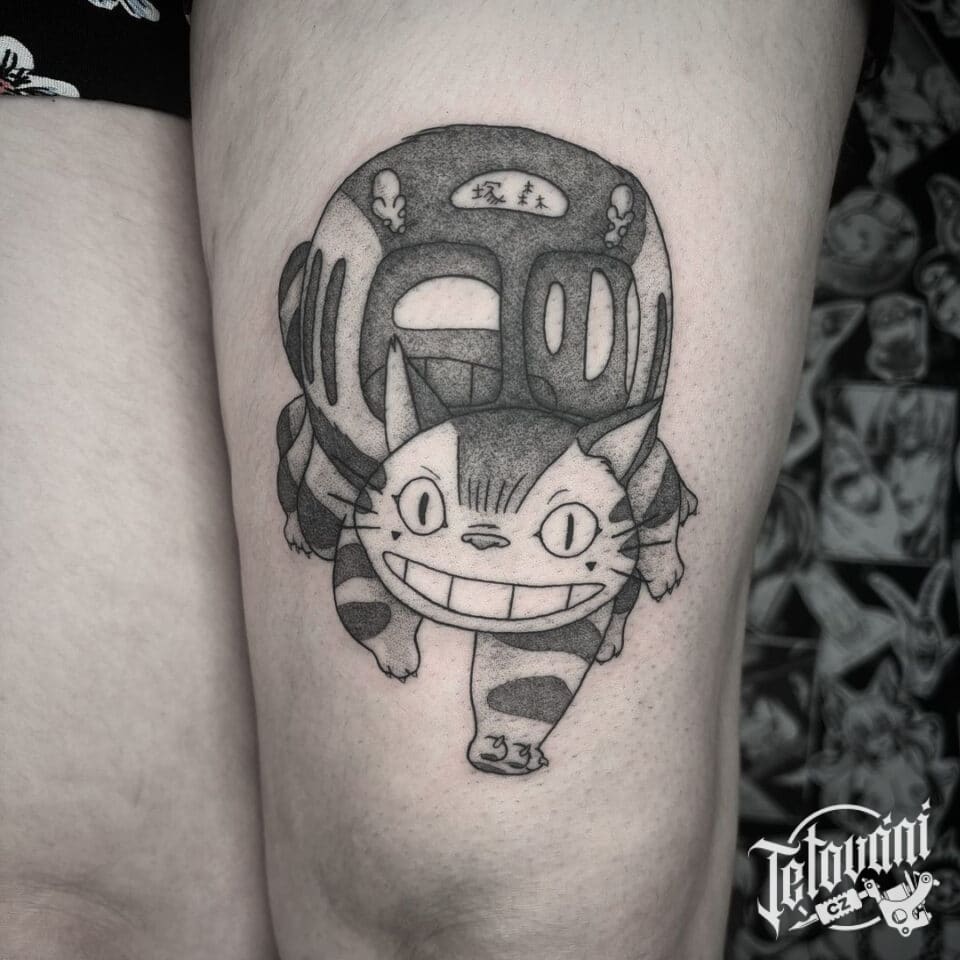 Tetování anime kočka, zvíře na stehno