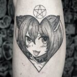 Tetování anime portrét srdce, postavička na lýtko
