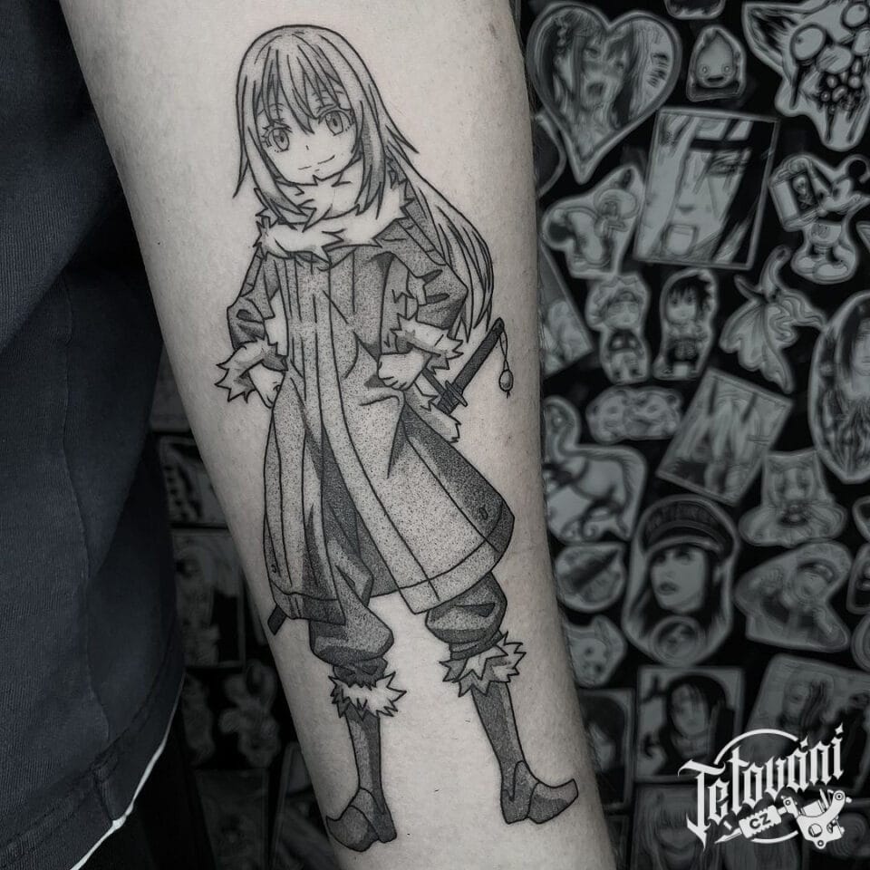 Tetování anime postavička, bojovník Slime – Rimuru Tempest na předloktí