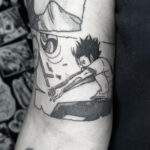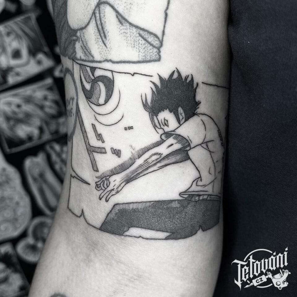 Tetování anime postavička z filmů a pohádek Haikyuu a Totoro na paži