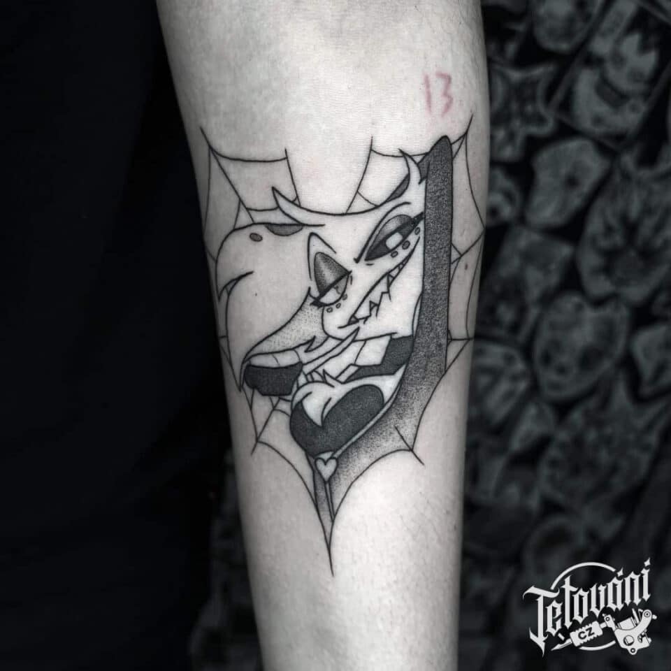 Tetování anime postavička z filmů a pohádek Angel Dust na předloktí