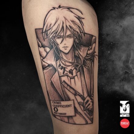 Tetování anime postavička z filmů a pohádek na bok stehna