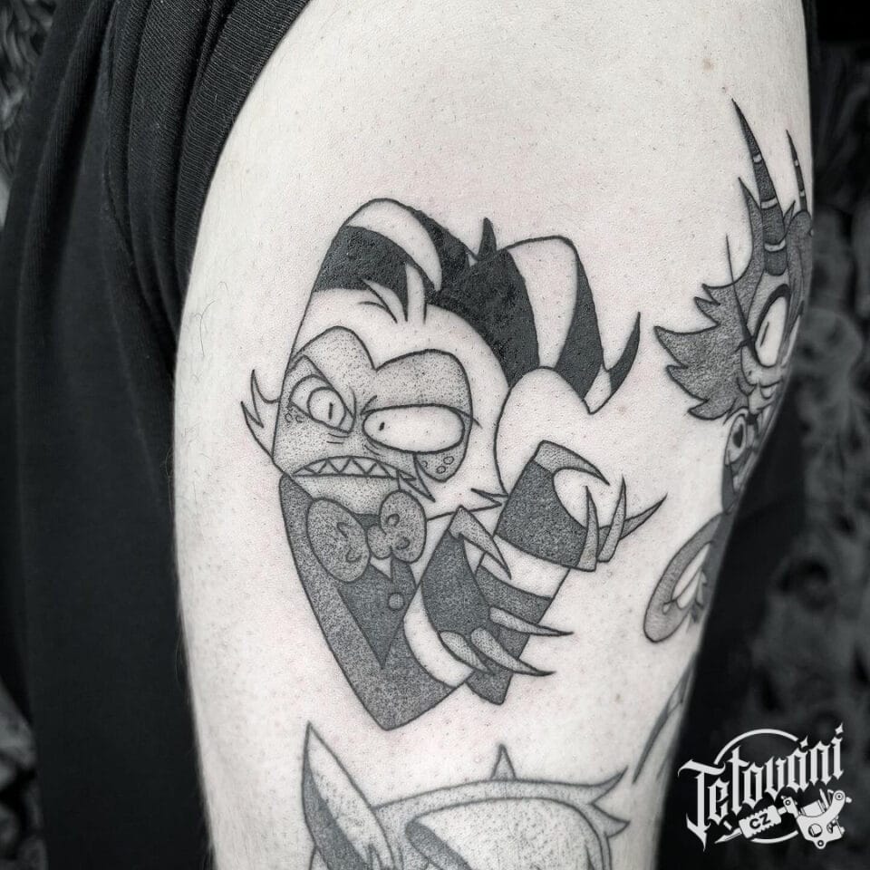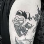 Tetování anime postavičky, znaky a symboly na rameno