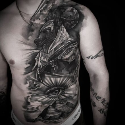 Tetování Anubis a ruce n...