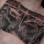 Tetování Anubis, egyptský pták a pyramidy na hrudník