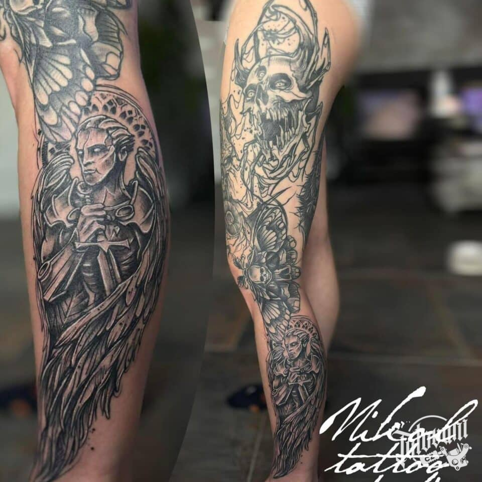 Tetování archanděl Michael na lýtku