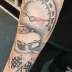 Tetování auto, hodiny, vlajky na ruku