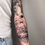 Tetování auto, příroda, hory na předloktí