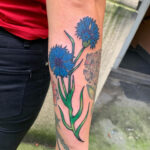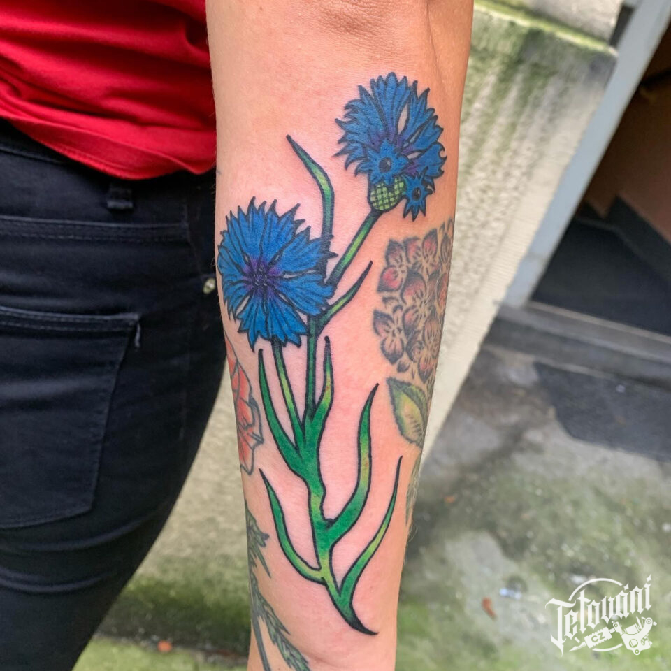 Tetování barevná květina na předloktí