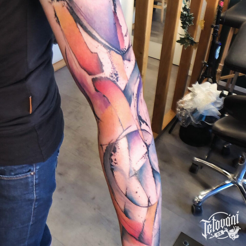 Tetování barevné čáry na ruku