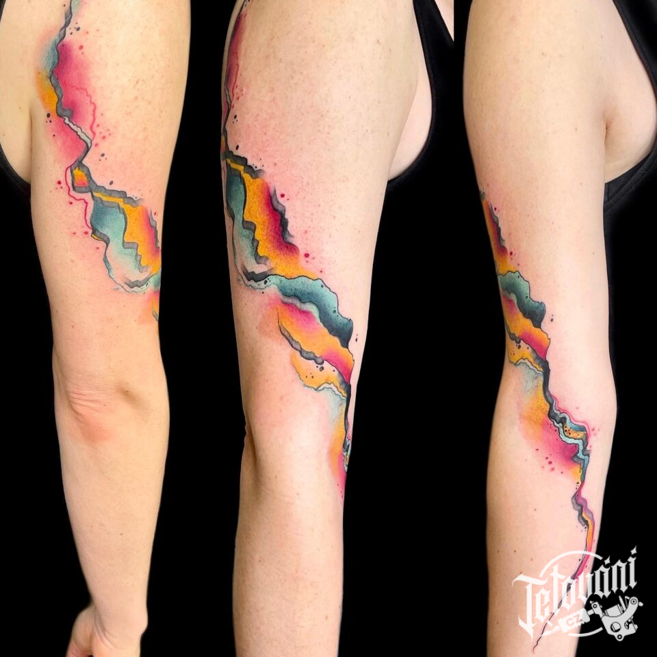 Tetování barevné čáry na ruku