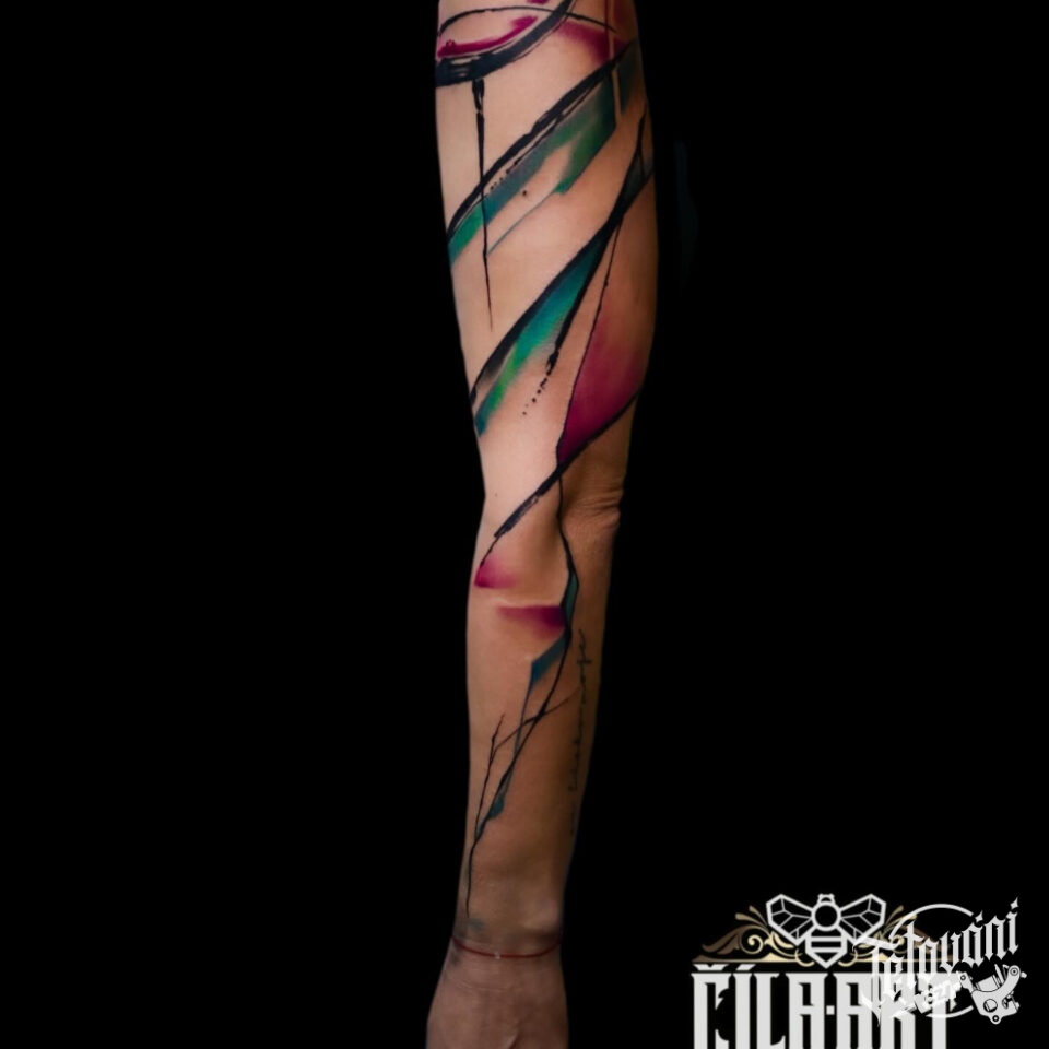 Tetování barevné čáry na ruku