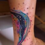 Tetování barevné čáry, symbol, vesmír, hvězdy na lýtko
