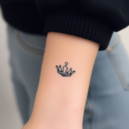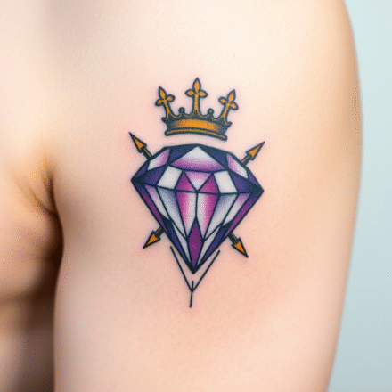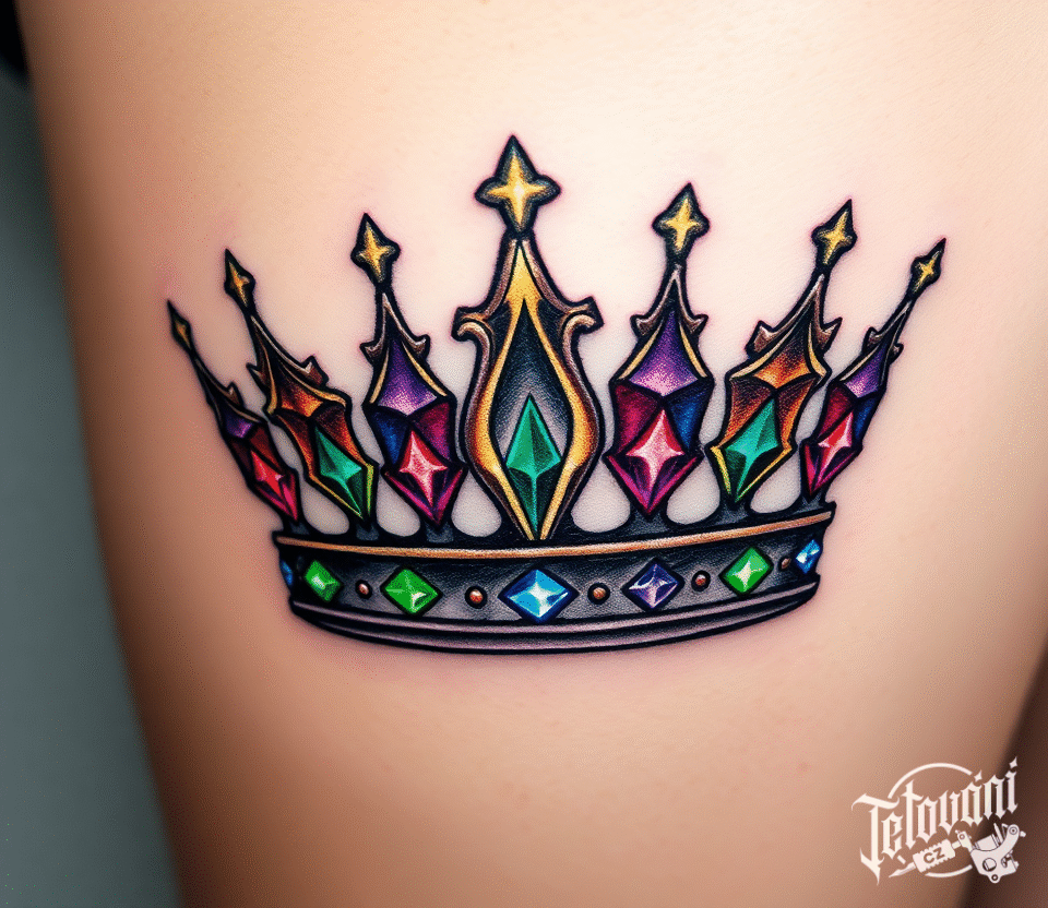 Tetování barevné diamanty s korunou, koruna na boku stehna