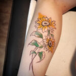 Tetování barevné květiny, slunečnice na lýtko