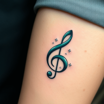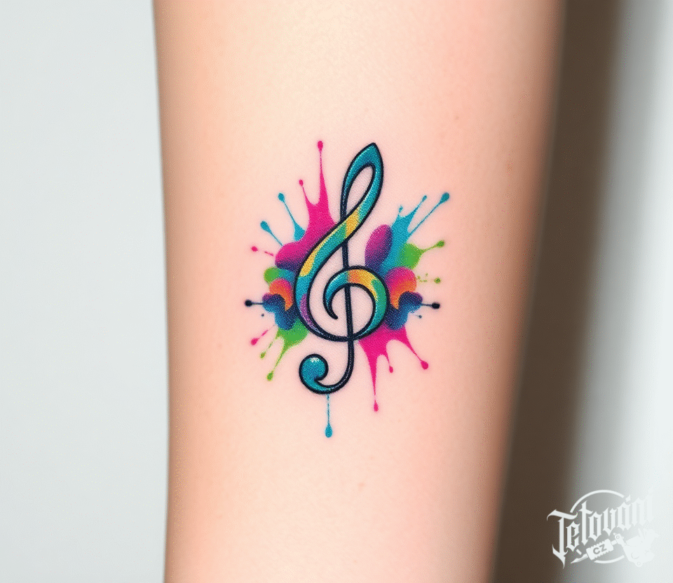 Tetování barevný houslový klíč na předloktí