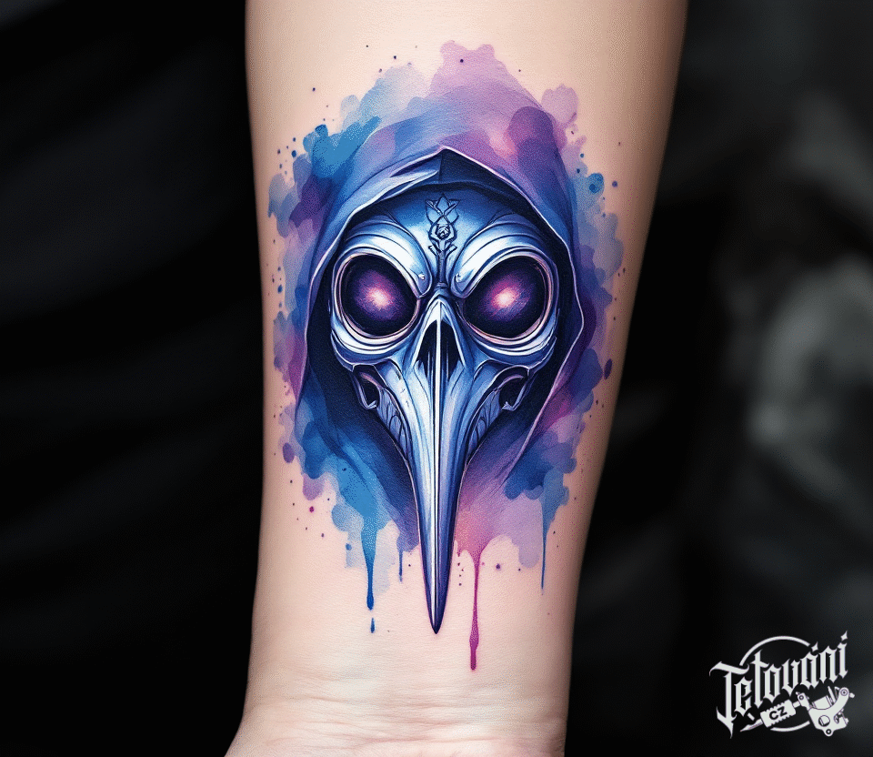 Tetování barevný morový doktor na předloktí