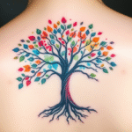 Tetování barevný strom, strom rodiny na záda