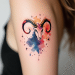 Tetování beran znamení zvěrokruhu, barevné souhvězdí berana na rameni