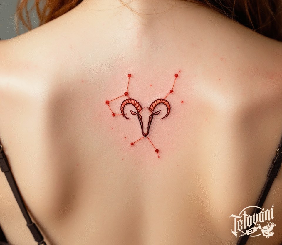 Tetování beran znamení zvěrokruhu, souhvězdí berana mezi lopatkami