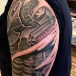 Tetování biomechanická ruka na rameni