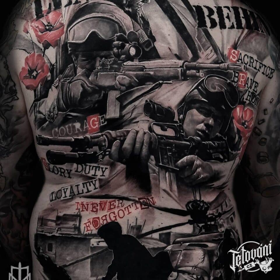 Tetování vojáci na zádech