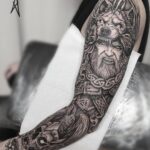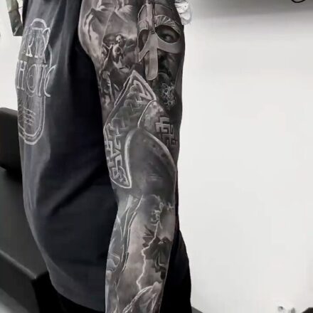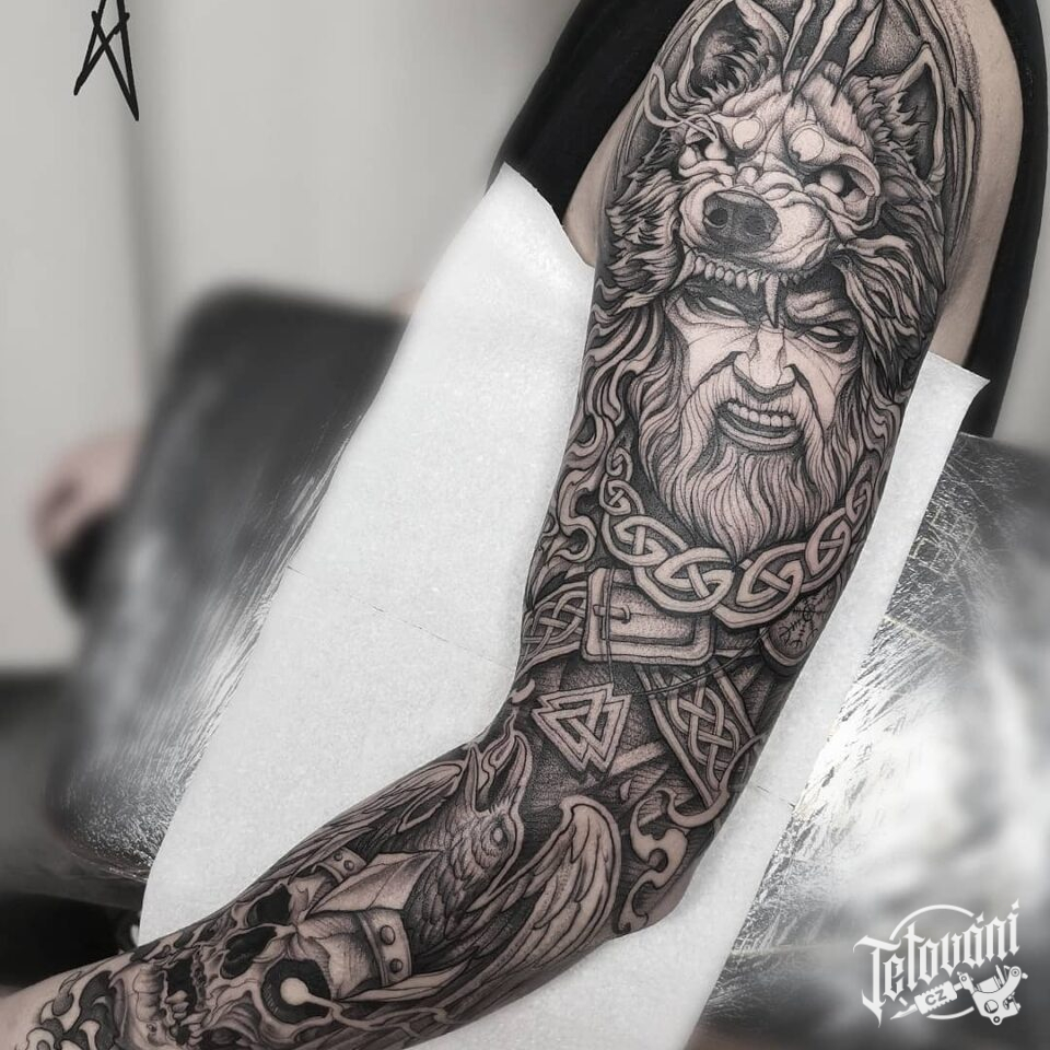 Tetování bojovník a lebka, rukáv