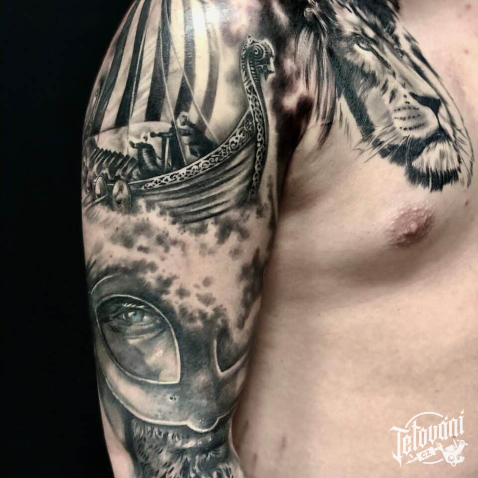 Tetování bojovník, dopravní prostředek loď na rameno