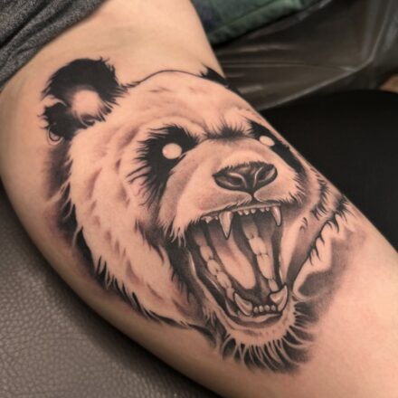 Tetování bojovník, lebka a medvěd na hrudník