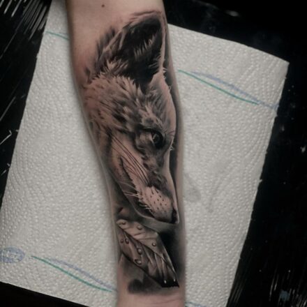 Tetování bojovník, liška, mandala na rameni