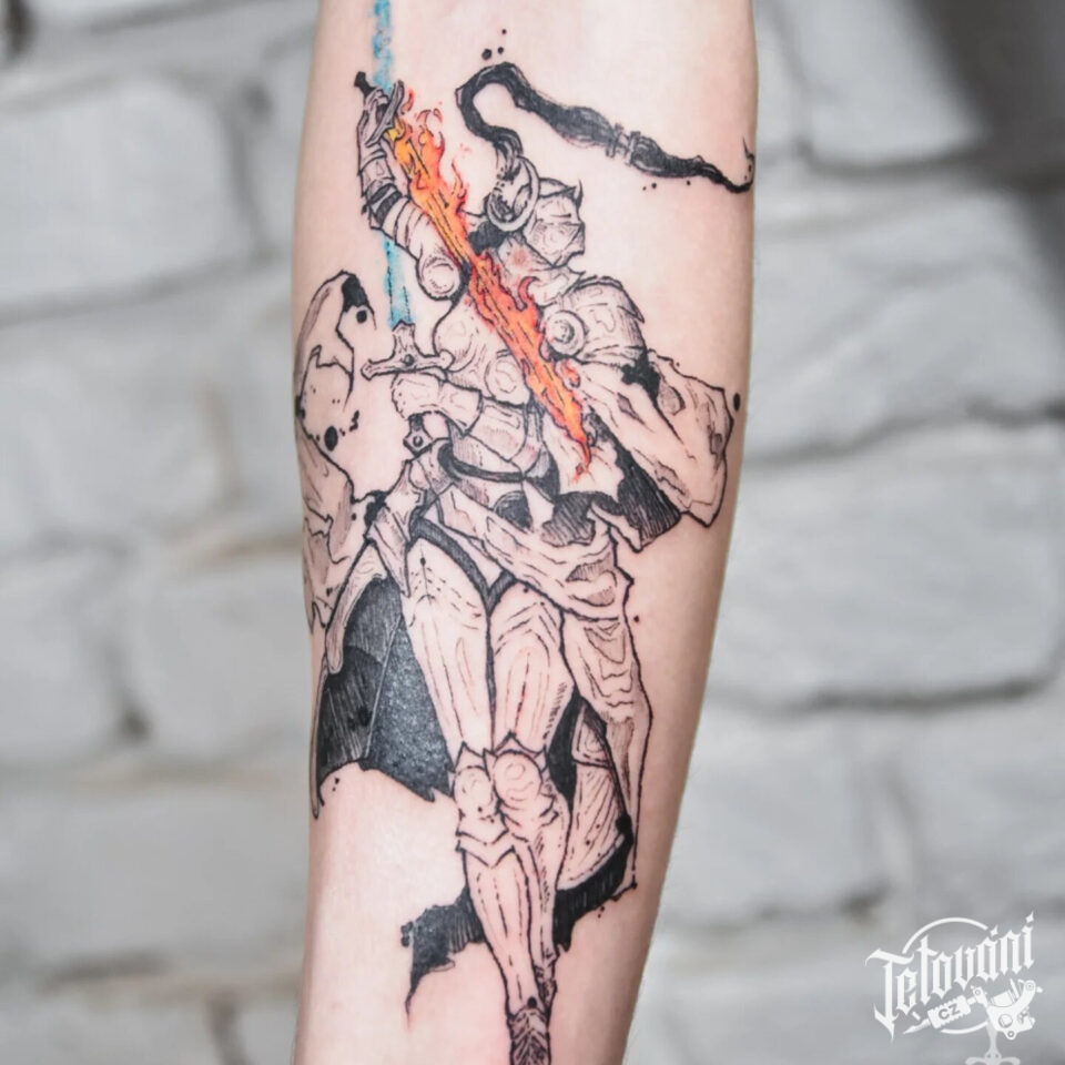 Tetování bojovník, rytíř na předloktí