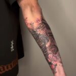 Tetování bojovník, samuraj, květiny sakura na předloktí