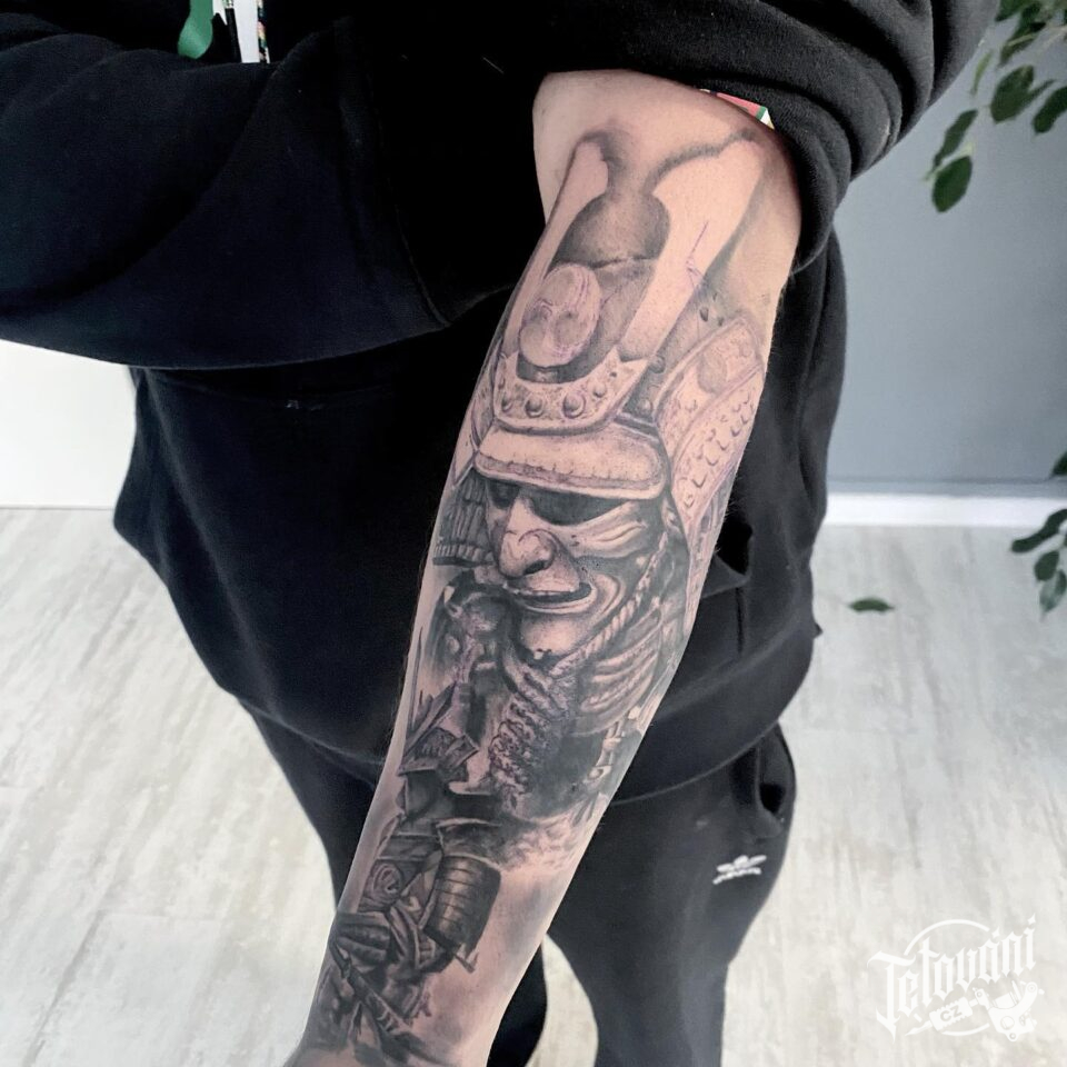 Tetování bojovník, samuraj na předloktí