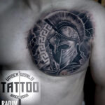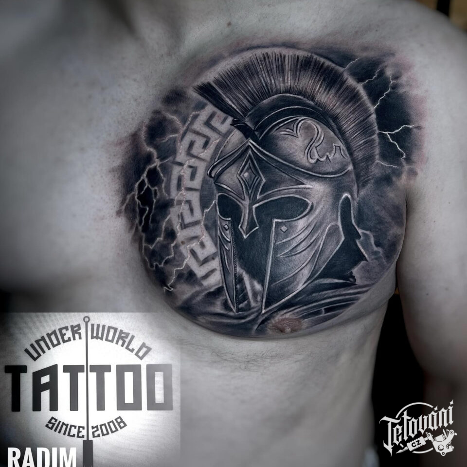 Tetování bojovník, sparťanský bojovník na prsa
