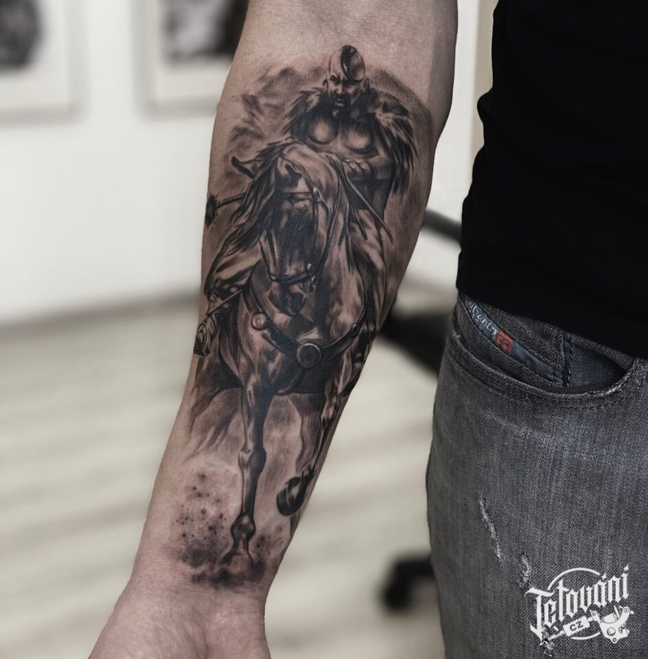 Tetování bojovník, zvíře kůň na předloktí